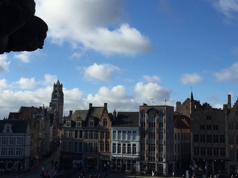 Wenn man sich der Altstadt vom Bahnhof aus nähert sieht zunächst nur die Spitzen der größeren Gebäude über grün hinausragen, den Belfried, die liebe Jungfrau und San Salvador. Sobald man jedoch die Straße und wenige Meter in den Altstadtkern vorgedrungen ist, kommt man sich vor wie auf einer Zeitreise. Würden die Menschen die sich in der Stadt bewegen entsprechende Kleidung tragen, sich dort nichts elektrisches, sowie keine Autos, Fahrräder, etc. befinden. Wäre das mittelalterliche Bild stimmig.