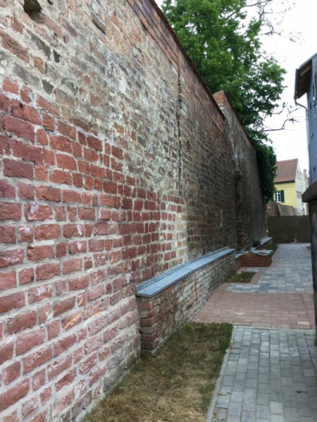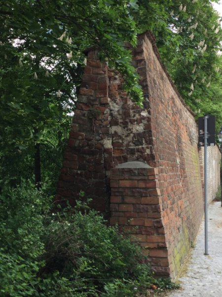 Und auch der Wall, bzw. evtl. einer der Wälle, lässt sich stellenweise, wie z.B. an der Wallpromenade noch gut erkennen.